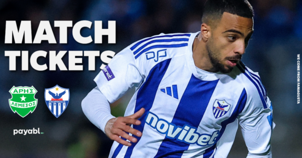 Η Ανόρθωση Αμμοχώστου ενημερώνει το φίλαθλο κοινό για τη διαδικασία διάθεσης των εισιτηρίων του αγώνα απέναντι στον Άρη Λεμεσού, ο οποίος θα διεξαχθεί στο στάδιο «Άλφα Μέγα» την Δευτέρα, 9 Φεβρουαρίου και ώρα 19:00.