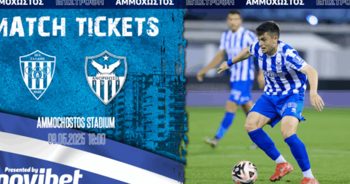 “Η Ανόρθωσις Αμμοχώστου ανακοινώνει τον τρόπο διάθεσης των εισιτηρίων για τον αγώνα με την Νέα Σαλαμίνα  (09/05, 19:00) στο στάδιο «ΑΜΜΟΧΩΣΤΟΣ ΕΠΙΣΤΡΟΦΗ».