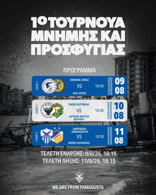 Το πρόγραμμα του πρώτου τουρνουά προσφυγιάς